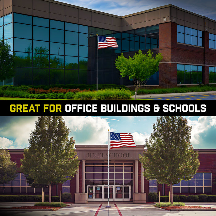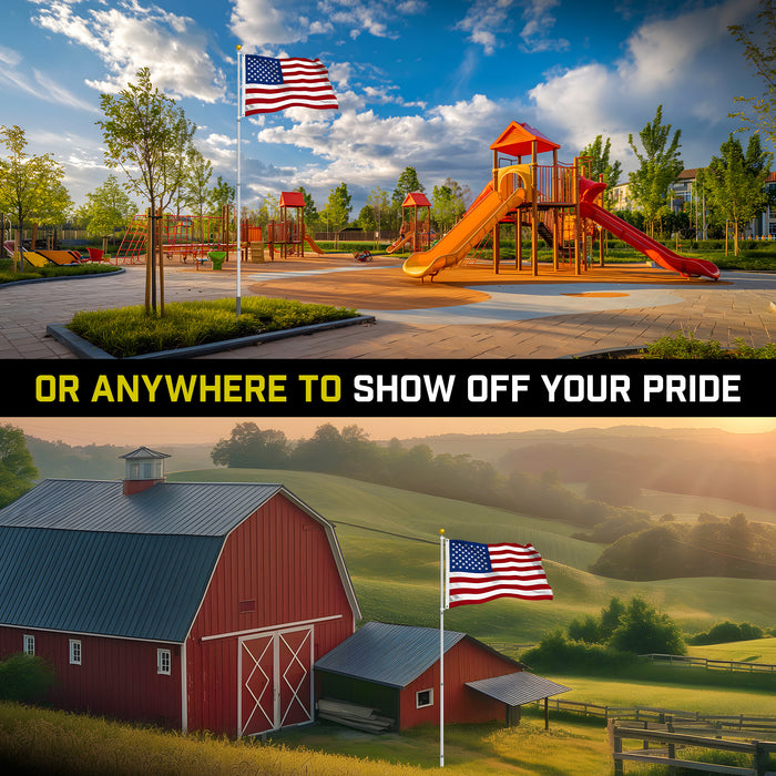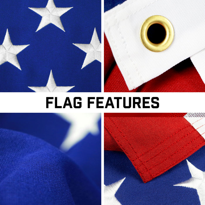 G128 Combo Pack: 16 Ft Telescoping Aluminum Flagpole (Silver) & American USA Flag 2.5x4 Ft, StormFlyer Series Embroidered 220GSM Spun Polyester | Pole with Flag Included