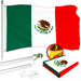G128 Combo Pack: 5 Ft Tangle Free Aluminum Spinning Flagpole (Silver) & Mexico Mexican Flag 2.5x4 Ft, ToughWeave Series Embroidered 300D Polyester | Pole with Flag Included
