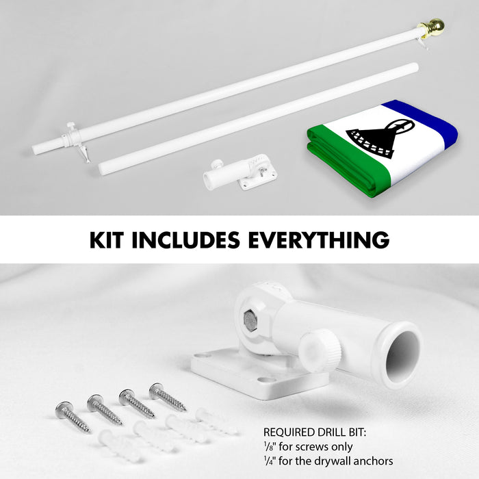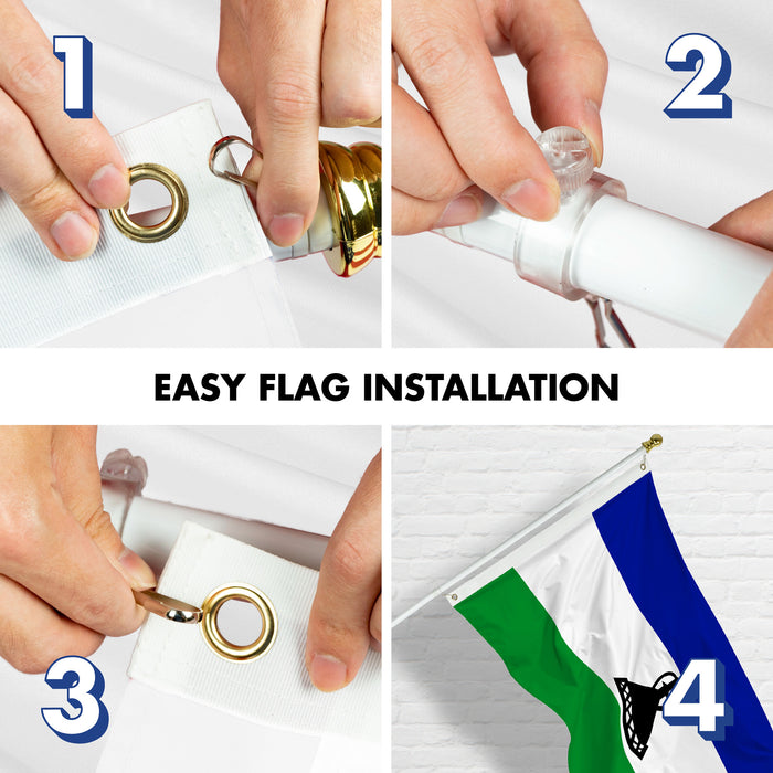 G128 Combo Pack: 6 Ft Tangle Free Aluminum Spinning Flagpole (White) & Lesotho Basotho Flag 3x5 Ft, LiteWeave Pro Series Printed 150D Polyester | Pole with Flag Included