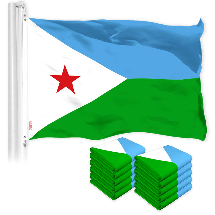 G128 10 Pack: Djibouti Djiboutians Flag | 3x5 Ft | LiteWeave Pro Series Printed 150D Polyester | Country Flag, Indoor/Outdoor, Vibrant Colors, Brass Grommets