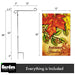 SPECS: Garden Flag Stand is 36" x 16" after assembly from black iron 3 piece set; Autumn Greetings Large Maple Leaf flag is a 12"x18" size vertical polyester garden flag. Imported, 100% Polyester Flag