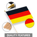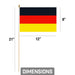 G128 50 Pack Handheld Germany German Stick Flags | 8x12 In | Printed 150D Polyester, Country Flag, Solid Wooden Stick, Spear Gold Tip
