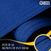 - Finest Embroidery, 4 Rows of Double-Needle Lock-Stitching on the Fly Hem