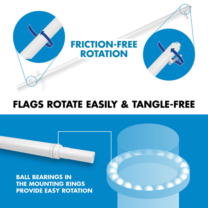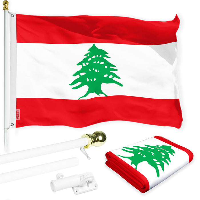 G128 Combo Pack: 6 Ft Tangle Free Spinning Flagpole (White) & Lebanon Flag 3x5 Ft Printed 150D Polyester, Brass Grommets (Flag Included) Aluminum Flag Pole