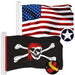 G128 Combo Pack: American USA Flag 2.5x4 Ft & Pirate Jolly Roger Red Head Scarf Flag 2.5x4 Ft | Both ToughWeave Series Embroidered 300D Polyester, Embroidered Design, Indoor/Outdoor, Brass Grommets