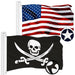 G128 Combo Pack: American USA Flag 3x5 Ft & Pirate Jolly Roger Swords Flag 3x5 Ft | Both ToughWeave Series Embroidered 300D Polyester, Embroidered Design, Indoor/Outdoor, Brass Grommets